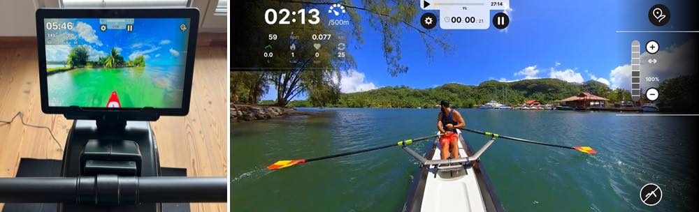 Die kostenpflichtige Kinomap lässt sich interaktiv über Sensors Bluetooth/ANT+ mit dem Rudergerät koppeln.