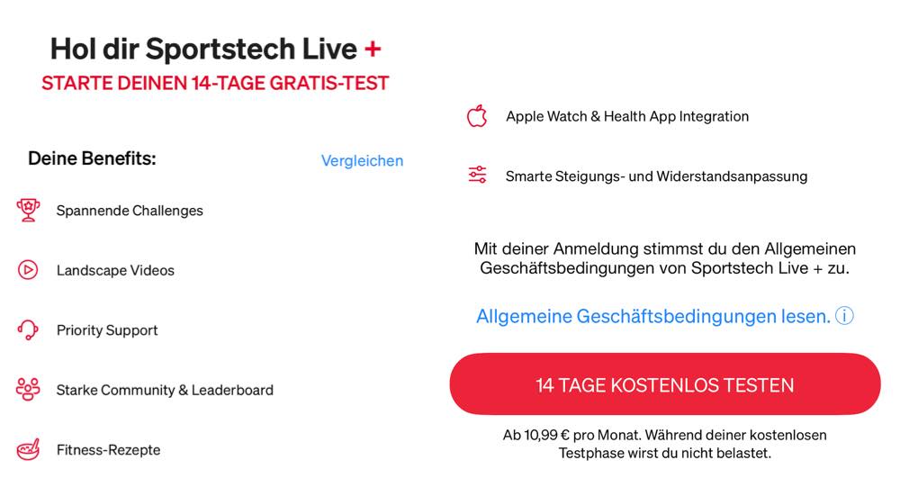 Da der Trainingscomputer minimalistisch gehalten ist, liegt der Fokus auf der digitalen Erweiterung durch Sportstech Live oder Kinomap App.
