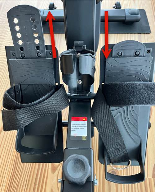 Rudererlebnis: Der Zug ist gleichmäßig, und die Auszugshöhe ist ergonomisch sehr gut gewählt. Feststehende Fußplatten ermöglichen maximale Kraftübertragung (bei meiner Schuhgröße EU 45 auf Stufe 5 eingestellt).