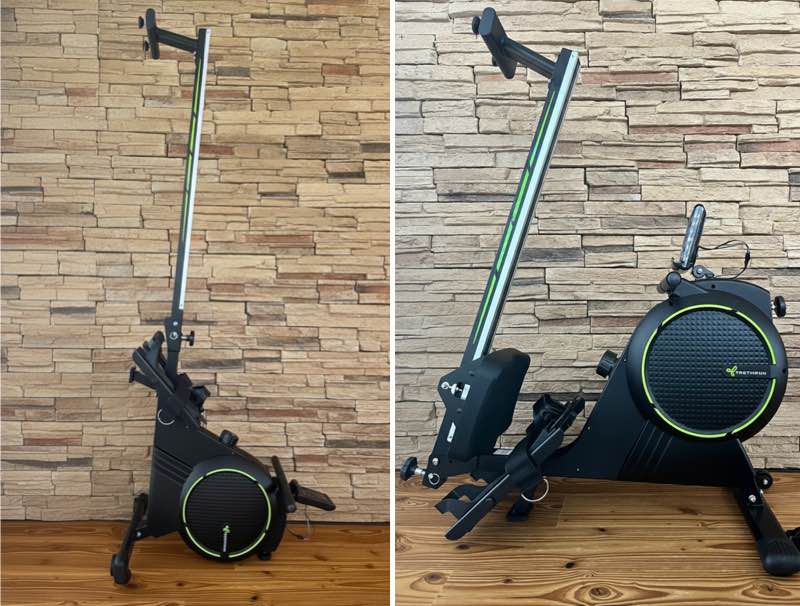 - Das Tretmann Rudergerät lässt sich auf zwei Arten platzsparend verstauen.
